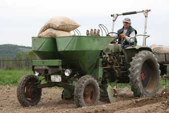 Der Kartoffelanbau ist unser Schwerpunkt. Wir bauen jedes Jahr ca. 8 Sorten, von mehlig bis festkochend, an. Unsere Kartoffeln sind stadtbekannt und sehr beliebt.